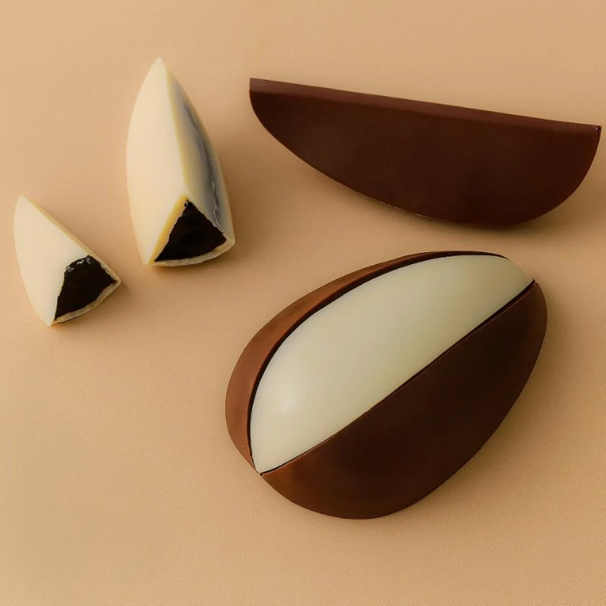 3 delige mal om partjes van een paasei te maken. De 6 stukjes vormen een heel ei.